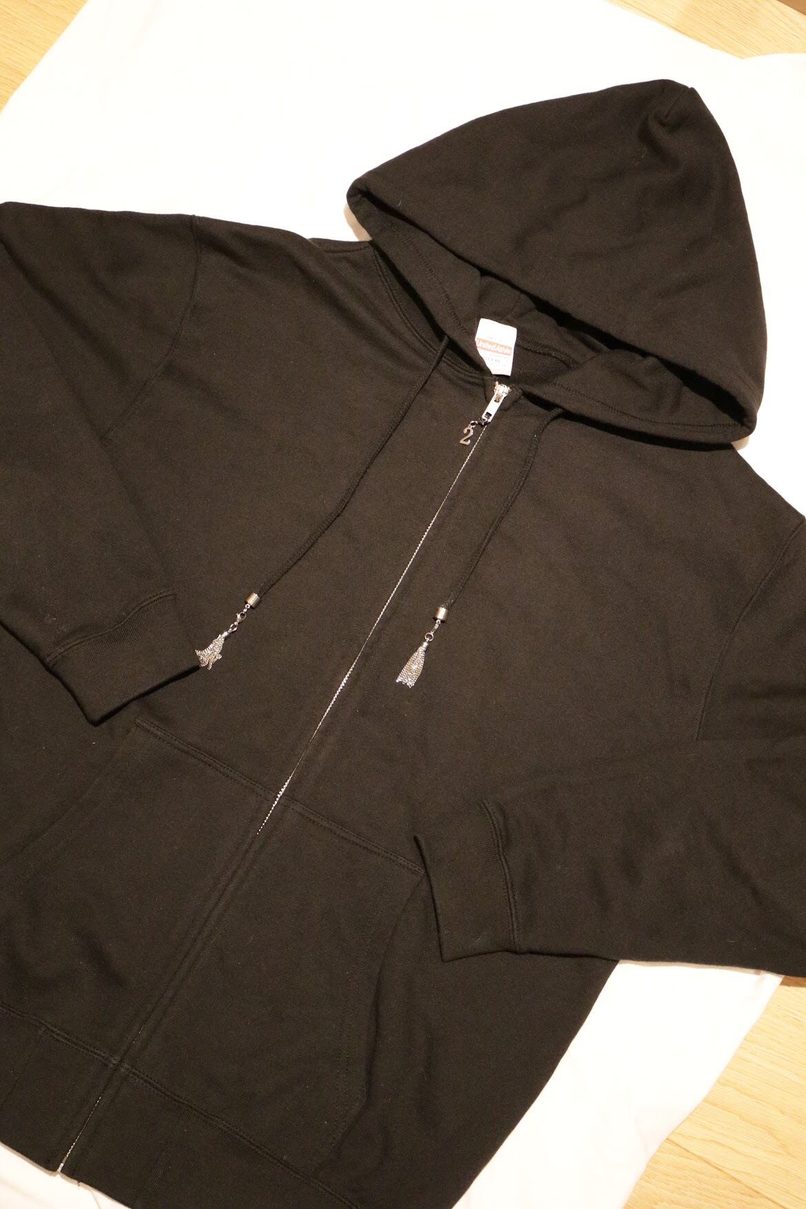 ※ステンレス素材のファスナーとフードひも先に222のオリジナルチャーム付属