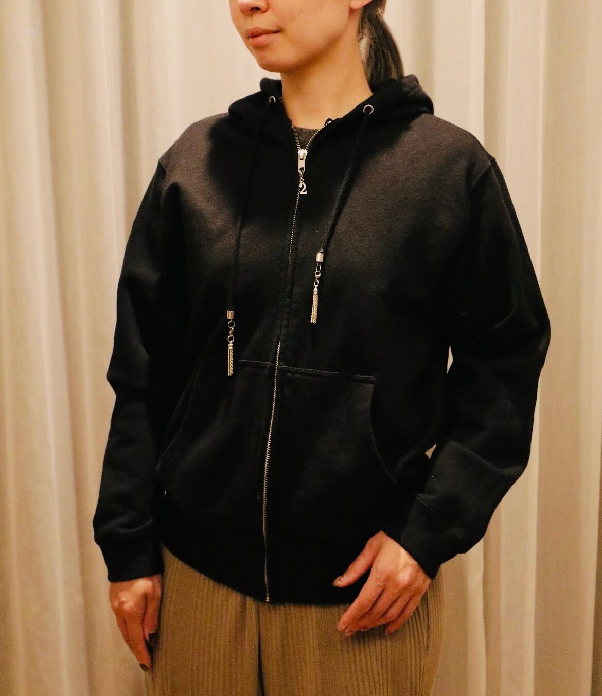 222新作ロングラベルタッセルパーカー